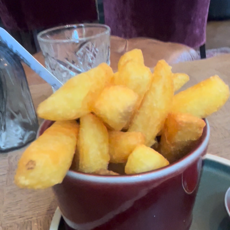 Taste: 7.9 – nice chips, but £2 service charge!?